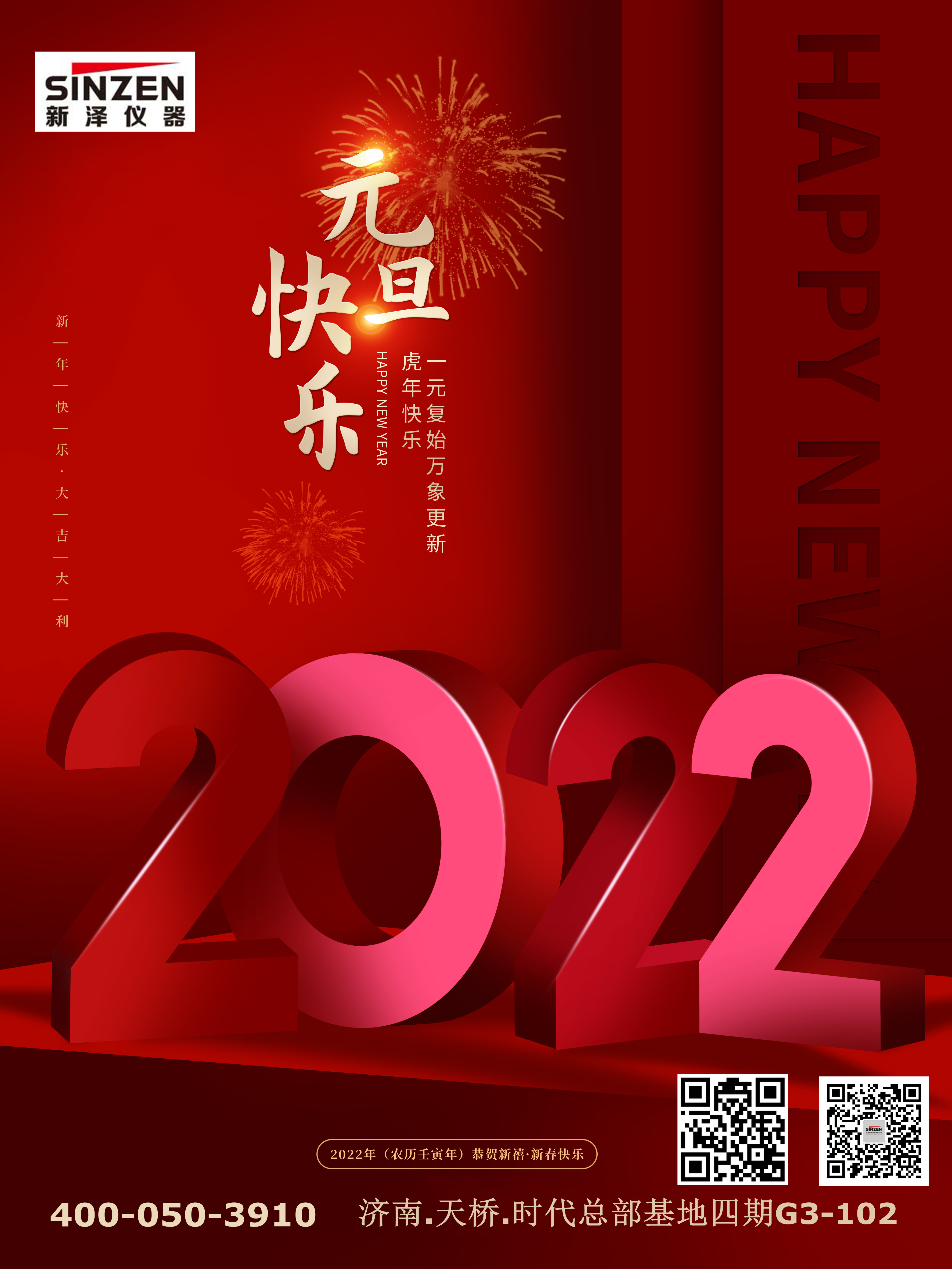 盛世迎春山河秀,神州煥彩萬物新。正值辭舊迎新的美好時(shí)刻,山東新澤儀器有限公司向一直關(guān)心支持公司發(fā)展的各級(jí)領(lǐng)導(dǎo)和各界人士,向辛勤奮戰(zhàn)在工作一線的成員們,致以最衷心的新年問候和美好祝福!