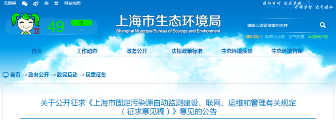 上海市固定污染源自動(dòng)監(jiān)測(cè)建設(shè)、聯(lián)網(wǎng)、運(yùn)維和管理有關(guān)規(guī)定(征求意見稿)