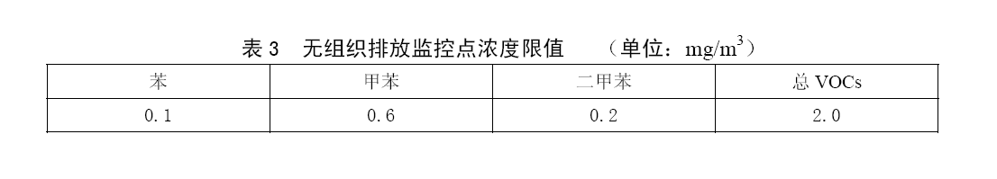 無組織排放應(yīng)執(zhí)行表3的無組織排放監(jiān)控點濃度限值。